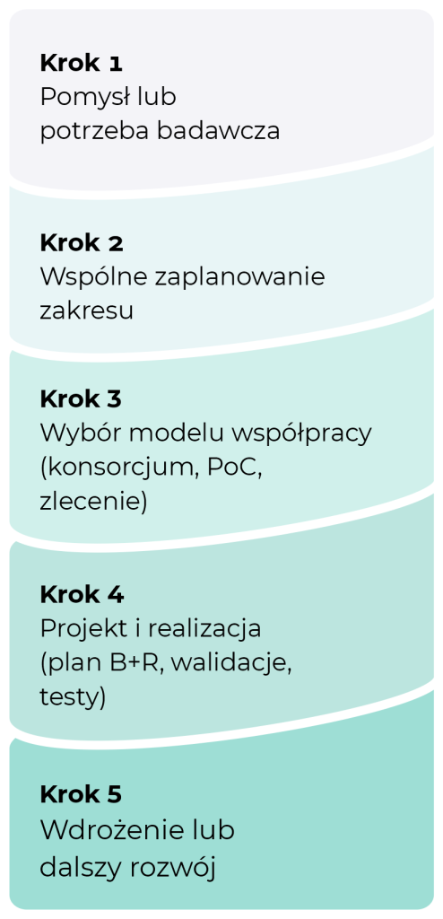 Elastyczność modeli współpracy: konsorcja, badania na zlecenie, PoC, wspólne prototypowanie.